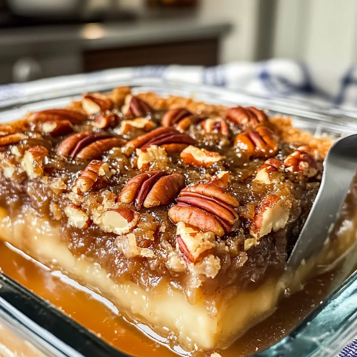 Du möchtest Zeit sparen und trotzdem diesen köstlichen Pecan-Kuchen-Dump Cake genießen? Du kannst die trockene Butter-Pecan-Kuchenmischung und die gehackten Pekannüsse bis zu 3 Tage im Voraus vorbereiten und in einem luftdichten Behälter im Kühlschrank aufbewahren. Achte darauf, dass die Zutaten gut verschlossen sind, um ihre Frische zu bewahren. Wenn es Zeit ist, zu backen, schichte einfach die vorbereiteten Zutaten in die Backform und füge die geschmolzene Butter hinzu; die Backzeit bleibt unverändert bei etwa 35-40 Minuten. Diese vorausschauende Zubereitung ermöglicht es dir, an hektischen Tagen ein schmackhaftes Dessert zu kreieren, das deinen Gästen genauso gut schmeckt wie frisch zubereitet!