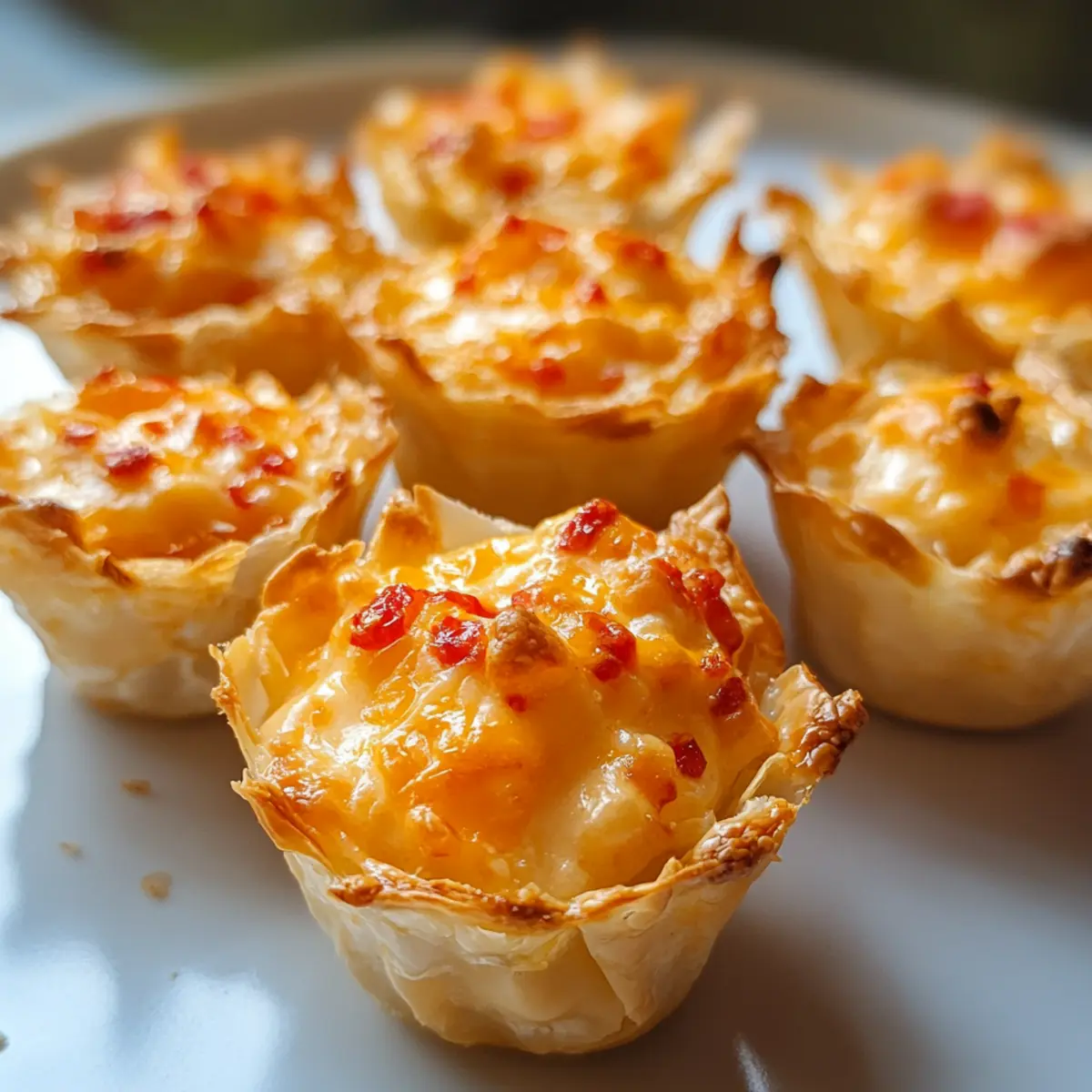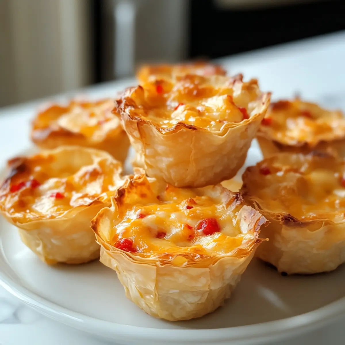 Die Pimento Käse Bissen sind perfekt für die Vorbereitung im Voraus – ideal für belebte Wochentage! Sie können die Käsemischung bis zu 24 Stunden im Voraus zubereiten und im Kühlschrank aufbewahren, um den intensiven Geschmack zu bewahren. Das Zusammenmischen von Mayonnaise, Frischkäse, Gewürzen und anderen Zutaten im Voraus spart wertvolle Zeit beim Kochen. An Tagen, an denen Sie schnell eine Vorspeise benötigen, füllen Sie einfach die Phyllo Cups mit der vorbereiteten Mischung und backen Sie sie für 10-12 Minuten, bis sie goldbraun sind. Achten Sie darauf, die Pimento Käse Bissen vor dem Kühlen auf Raumtemperatur abkühlen zu lassen, um eine optimale Textur zu erhalten, damit sie auch nach dem Aufwärmen frisch und köstlich bleiben!