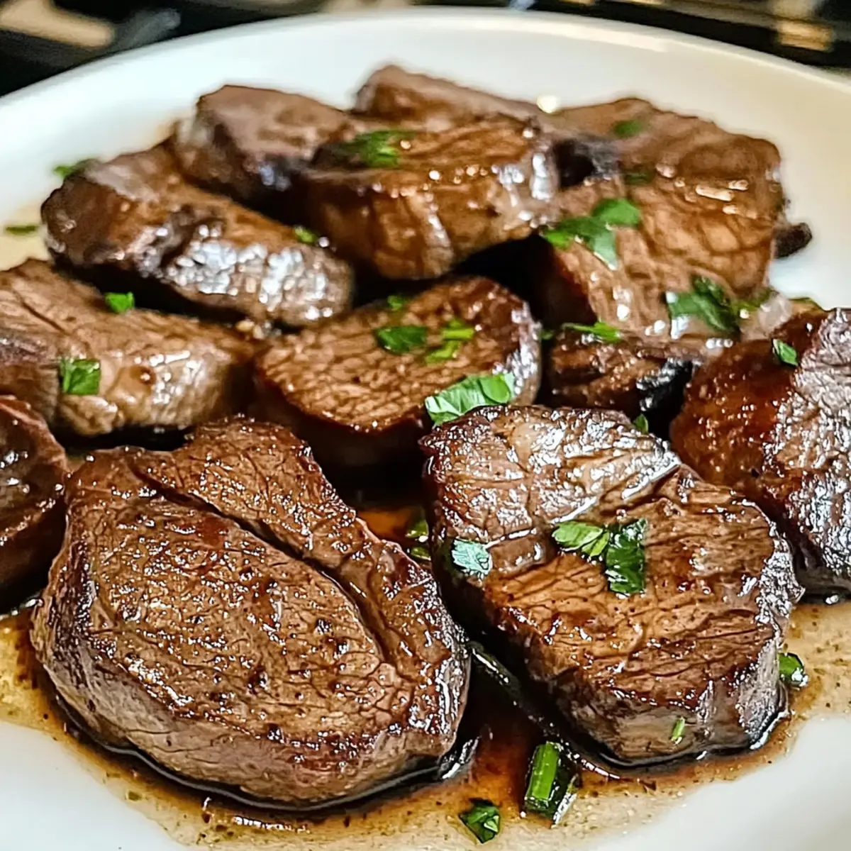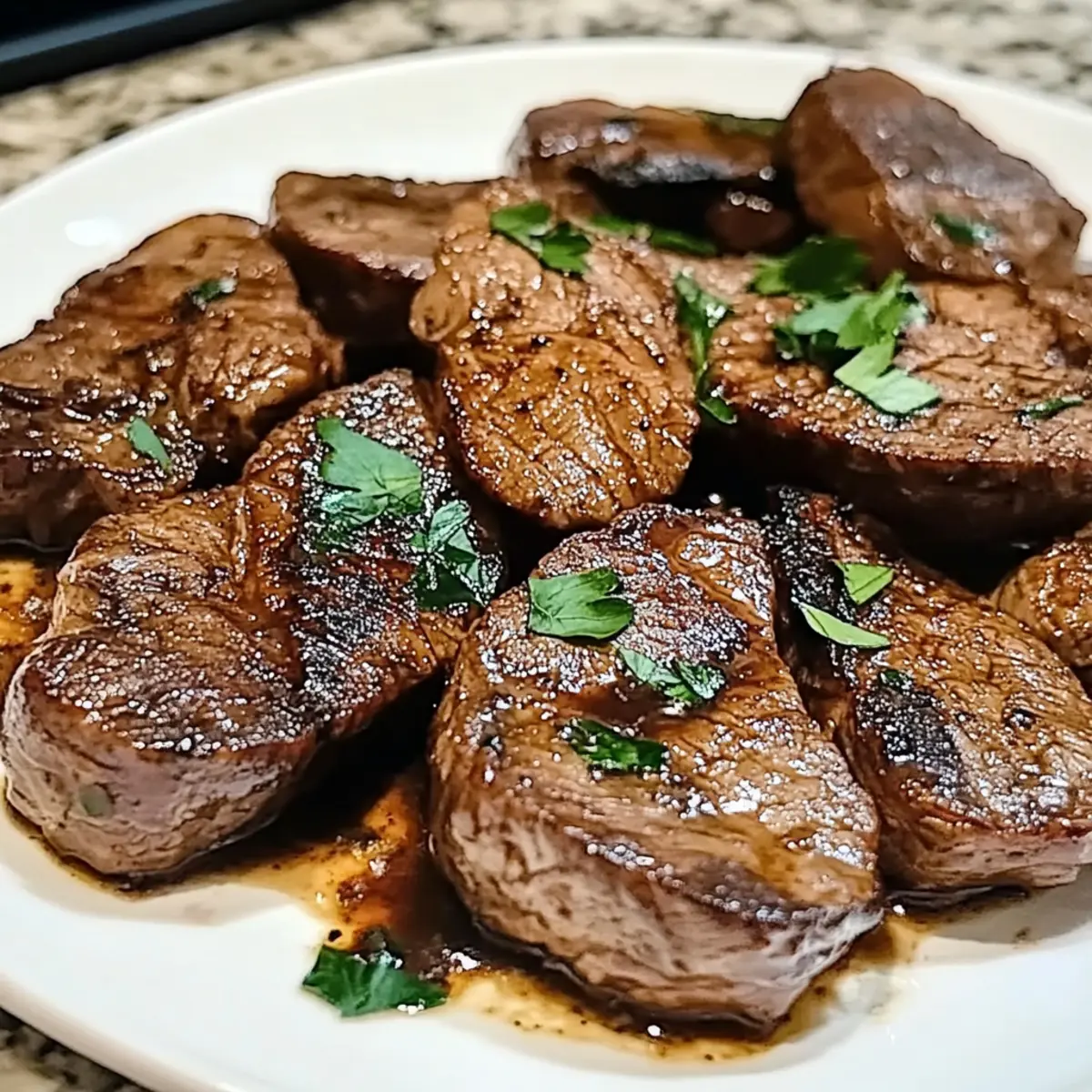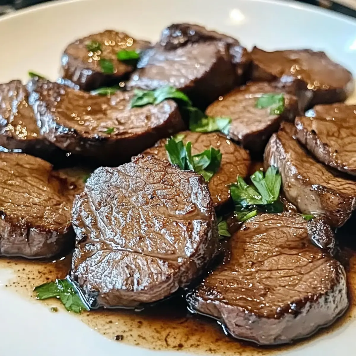 - Die Rinderleber auf einen Teller legen, mit frischer Petersilie garnieren und heiß servieren.