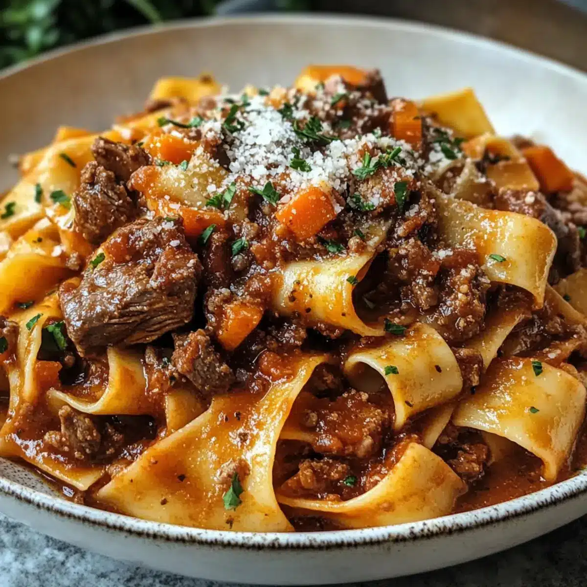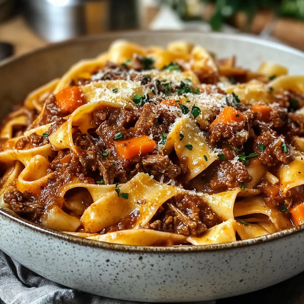 Rindfleisch- und Rotwein-Ragù-Pappardelle: Genuss pur