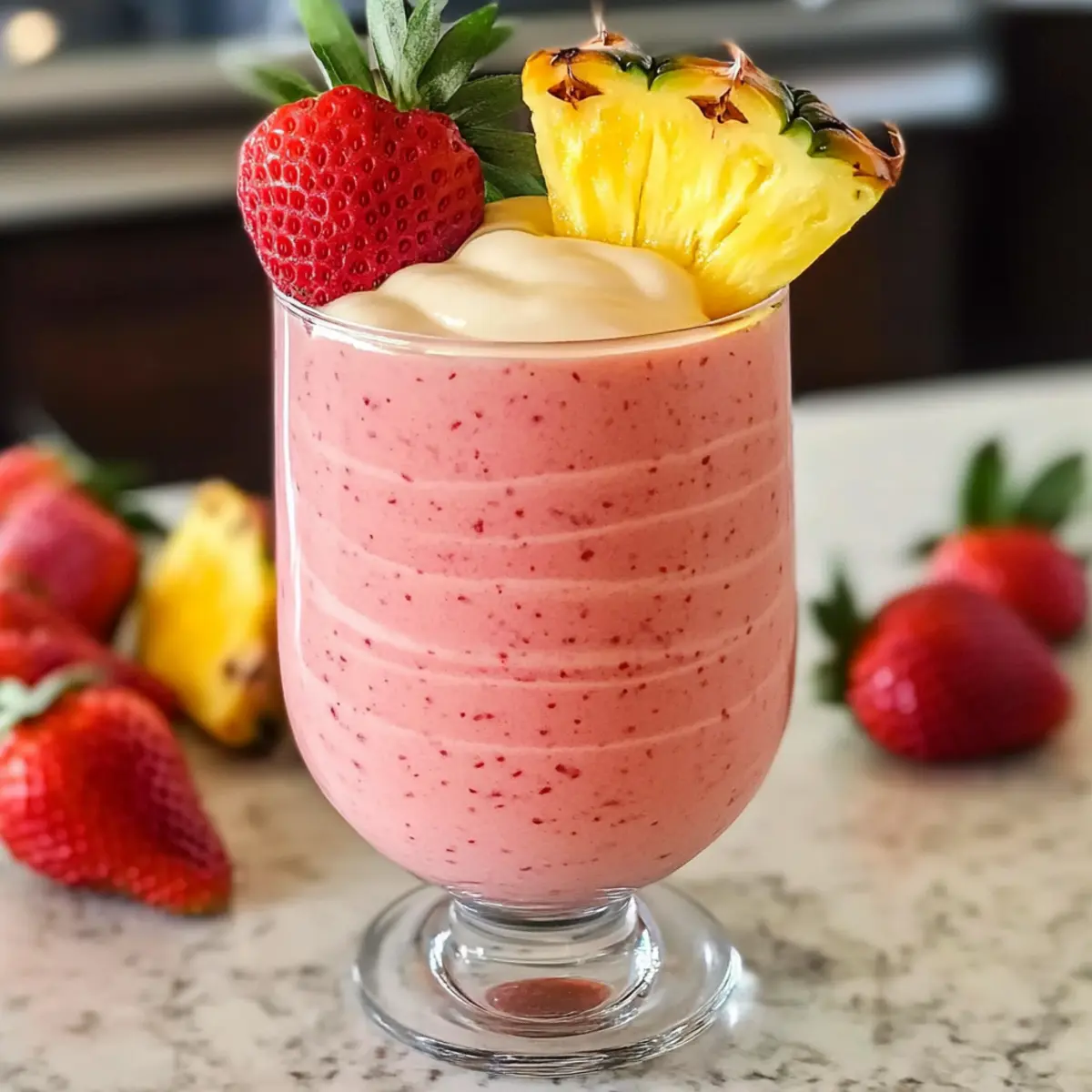 Stell dir vor, wie ein erfrischender Sommermorgen mit der Sonne, die durch das Küchenfenster strahlt, und dem verführerischen Aroma von frischen Früchten, das in der Luft schwebt. Mein Rezept für einen Rosa Ananas Smoothie ist die Antwort auf all jene Tage, an denen du etwas Aufheiterndes und Gesundes brauchst. Diese Mischung aus süßer rosa Ananas, saftigen Erdbeeren und cremigem Joghurt ist nicht nur ein Genuss, sondern auch kinderleicht zuzubereiten – in weniger als 5 Minuten hast du ein köstliches Getränk, das perfekt für dein Frühstück, als Snack oder nach dem Workout ist. Und das Beste daran? Es ist anpassbar, sodass du schnell etwas zaubern kannst, das sowohl lecker als auch nahrhaft ist! Neugierig, welche köstlichen Variationen darauf warten, entdeckt zu werden?