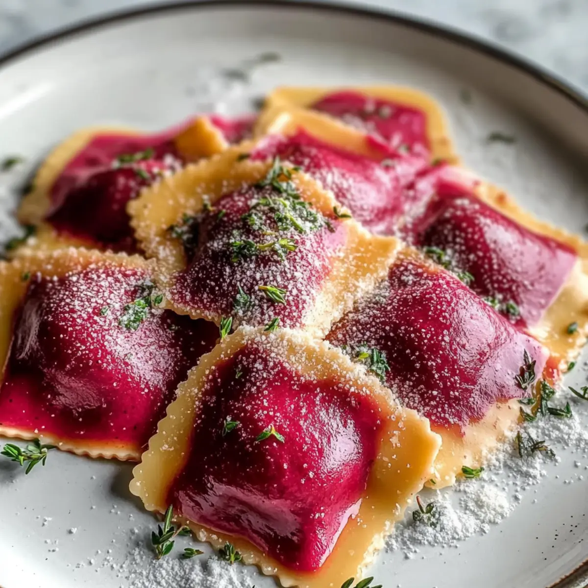Gesund und nahrhaft: Diese Ravioli sind nicht nur köstlich, sondern auch gesund – reich an Vitaminen durch die Rote Bete und Proteinen aus dem Ricotta, was sie zu einer perfekten Wahl für Gesundheitsbewusste macht.