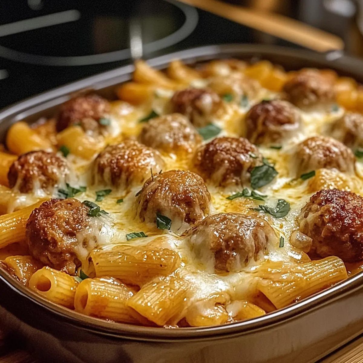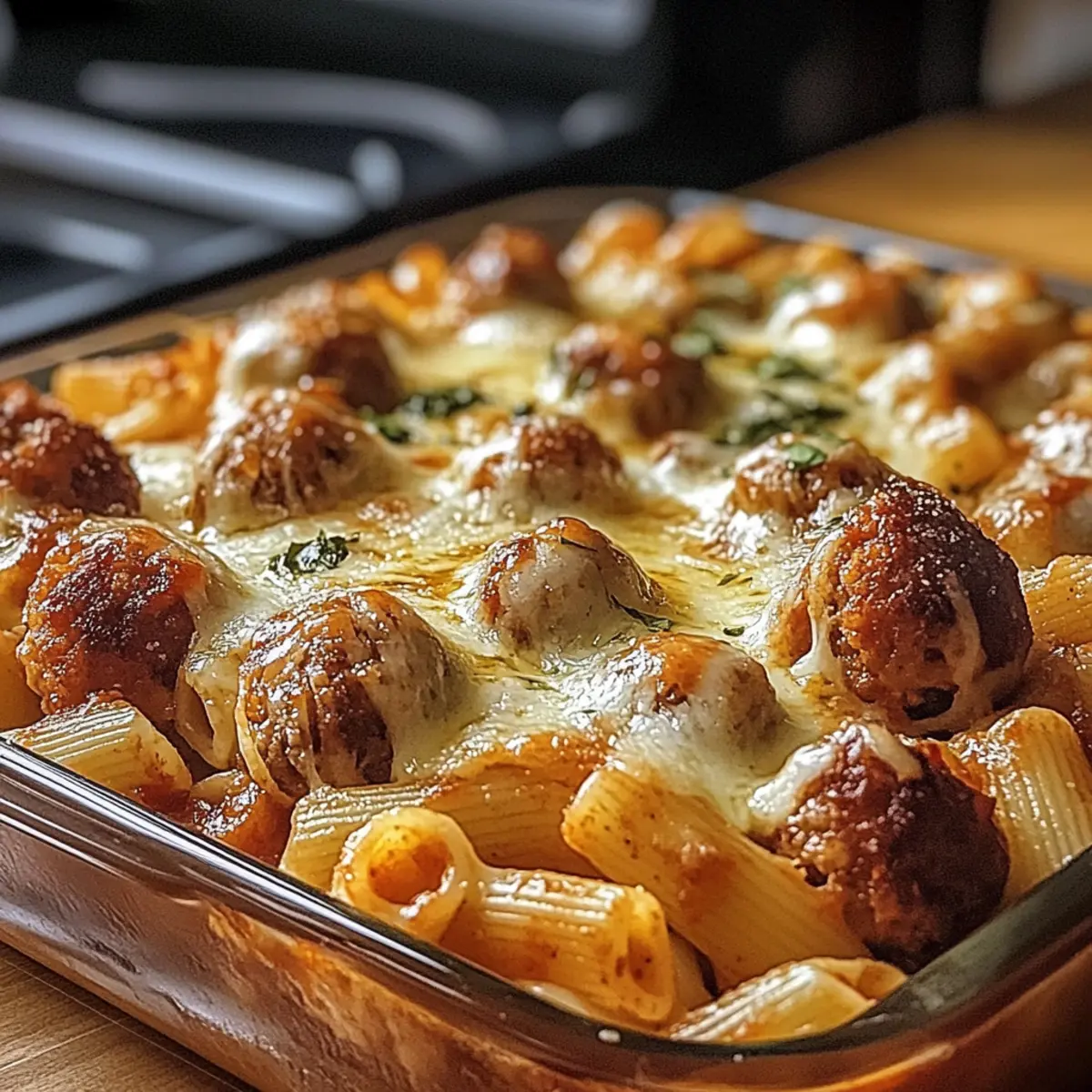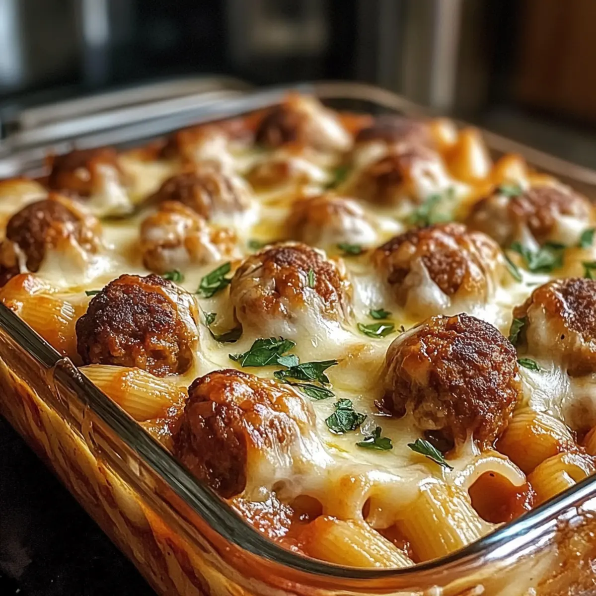 Dieser Saftiger Fleischbällchen-Nudelauflauf ist die perfekte Mischung aus Komfort und herzhaftem Genuss für die ganze Familie.