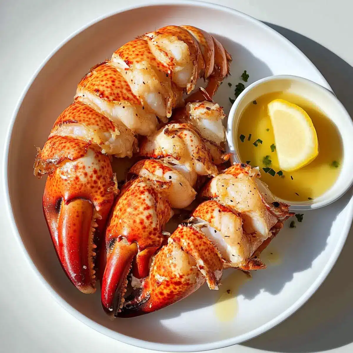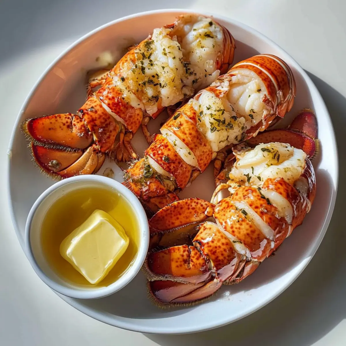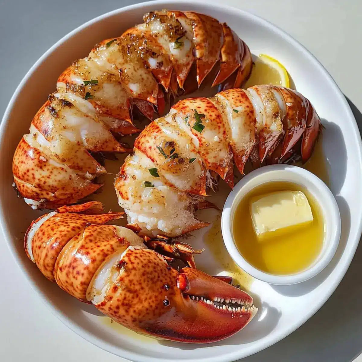 Knoblauchbutter: Ersetzen Sie die ungesalzene Butter durch Knoblauchbutter für einen herzhaften Geschmack. Einfach ein paar gehackte Knoblauchzehen in der Butter anbraten, bevor Sie sie über die Hummelschwänze träufeln.