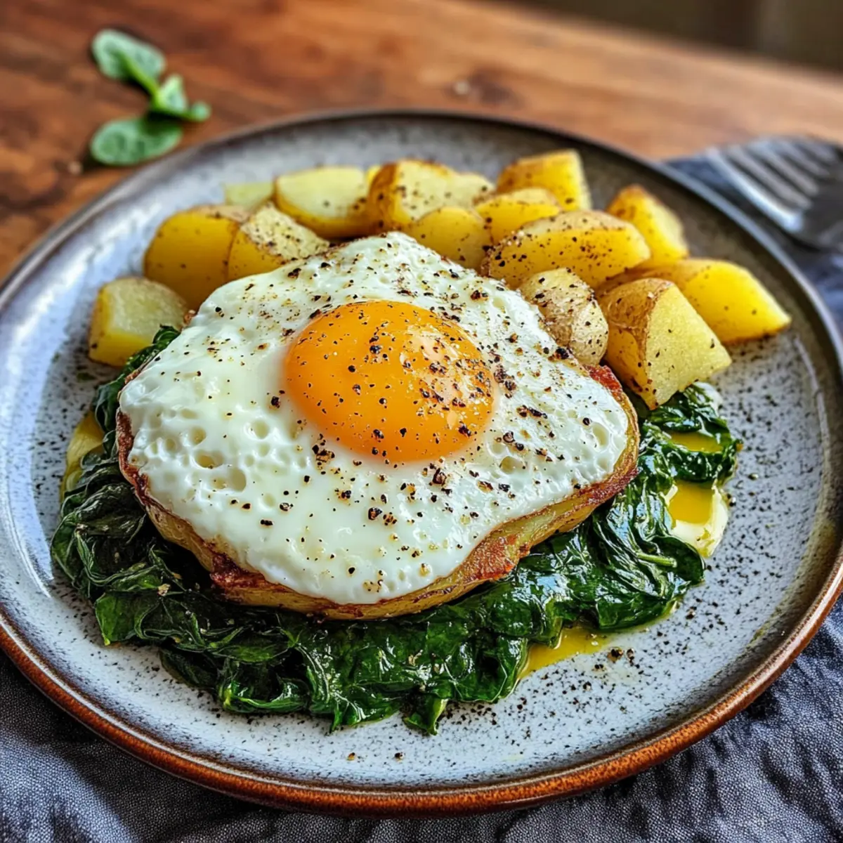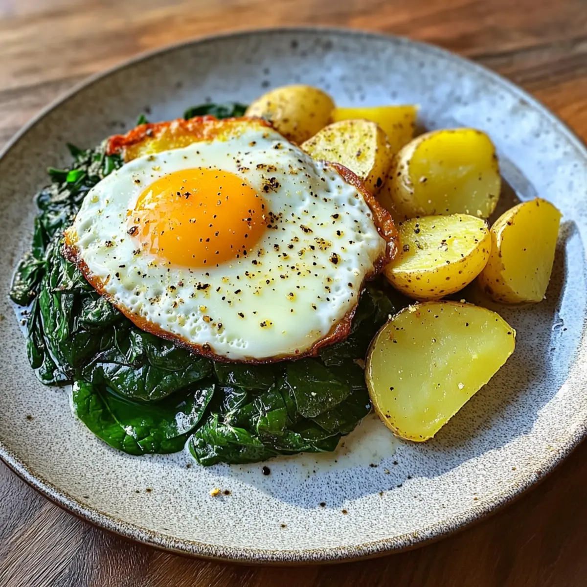 Spinat mit Kartoffeln und einem Spiegelei für Anfänger