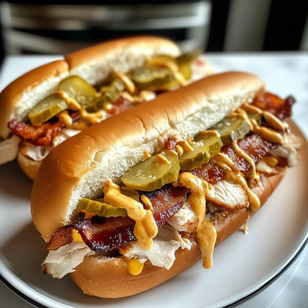 Wenn ich an die Südstaaten denke, kommen mir sofort die herzlichen Aromen und der unübertroffene Charme in den Sinn. Diese Südkarolina Vogelhund Sandwiches fangen genau dieses Gefühl ein und sind perfekte Begleiter für entspannte Mahlzeiten oder gesellige Zusammenkünfte. Mit zart gegrilltem Hähnchen, knusprigem Bacon und schmelzendem Cheddar, verwöhnt eine cremige Ranch-Dressing-Note und knackige Dill-Pickles jeden Biss. Und das Beste? Diese einfache, anfängerfreundliche Rezeptur ist in nur 30 Minuten zubereitet und eignet sich wunderbar als komfortable Mahlzeit an jedem Tag. Du wirst sehen, wie solch ein köstlicher Genuss bei Familie und Freunden ein Lächeln zaubert! Hast du am Wochenende schon Pläne, um diese köstlichen Sandwiches auszuprobieren?