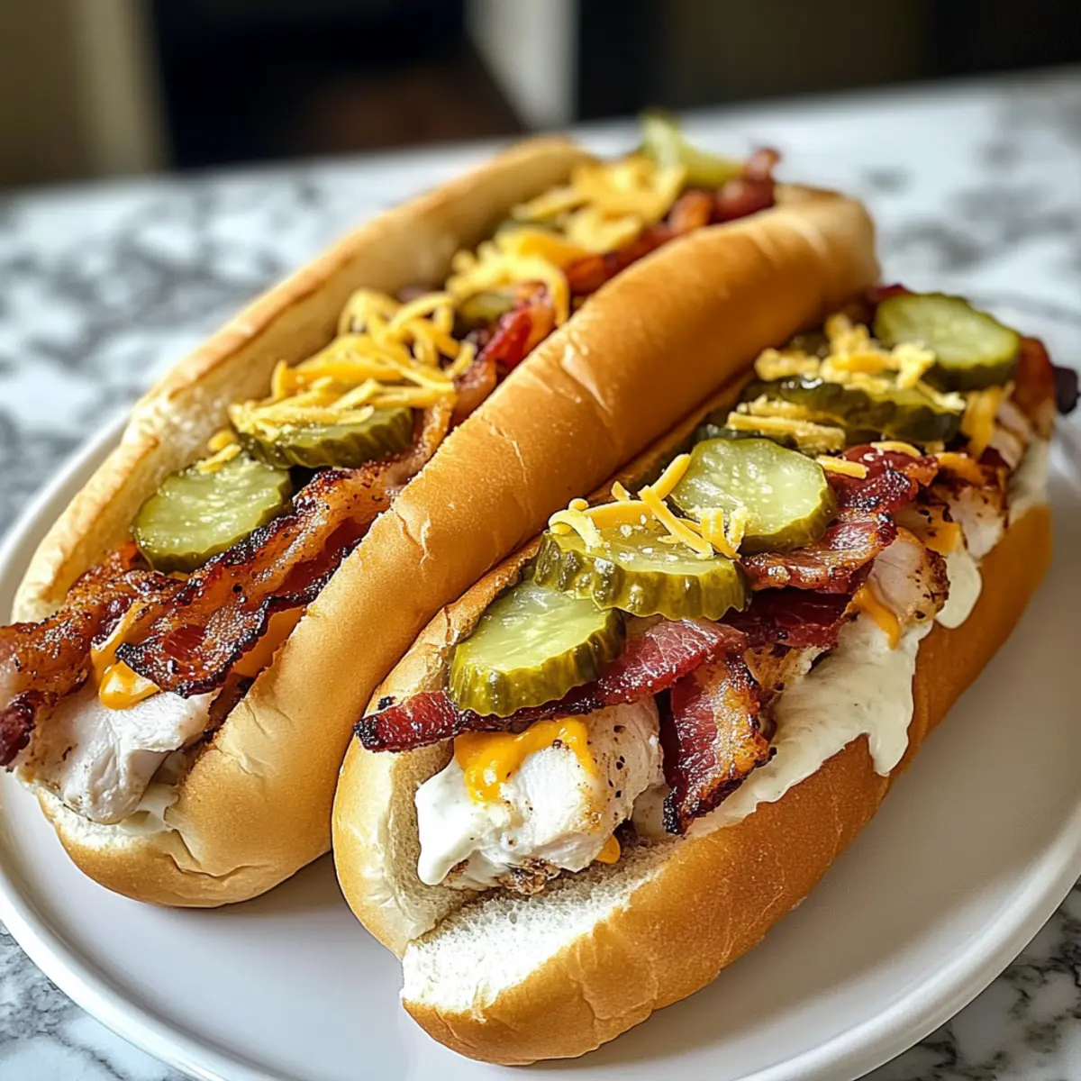 Unwiderstehlicher Geschmack: Die Kombination aus zartem Hähnchen, knusprigem Bacon und cremigem Ranch-Dressing sorgt für ein wahres Geschmacksfest.