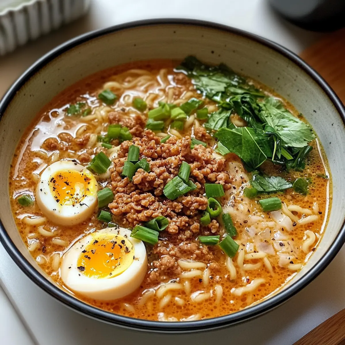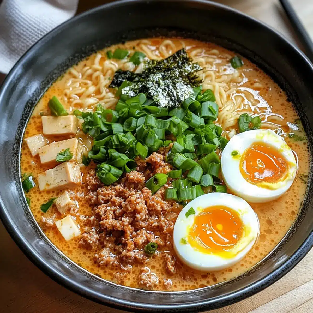 Ein gemütlicher Abend kann nicht besser beginnen als mit einer dampfenden Schüssel Tan Tan Ramen. Diese Spezialität, die ihren Ursprung in der chinesischen Küche hat, vereint eine cremige Sesambrühe mit einer verlockend würzigen Note, die für Herz und Gaumen gleichermaßen ein Hochgenuss ist. Mit zarten Nudeln, saftigem Hackfleisch und einem samtigen, weich gekochten Ei ist dieses Gericht nicht nur ein Genuss, sondern auch ein gesundes Komfortessen, das sich perfekt für ein entspanntes Abendessen nach einem langen Tag eignet. Darüber hinaus lässt sich Tan Tan Ramen schnell zubereiten, sodass Sie die Aromen Ihrer eigenen Küche in nur wenigen Schritten genießen können. Bereit, sich in die Welt der Aromen und Texturen zu stürzen? Dann bleiben Sie dran für mein Rezept!