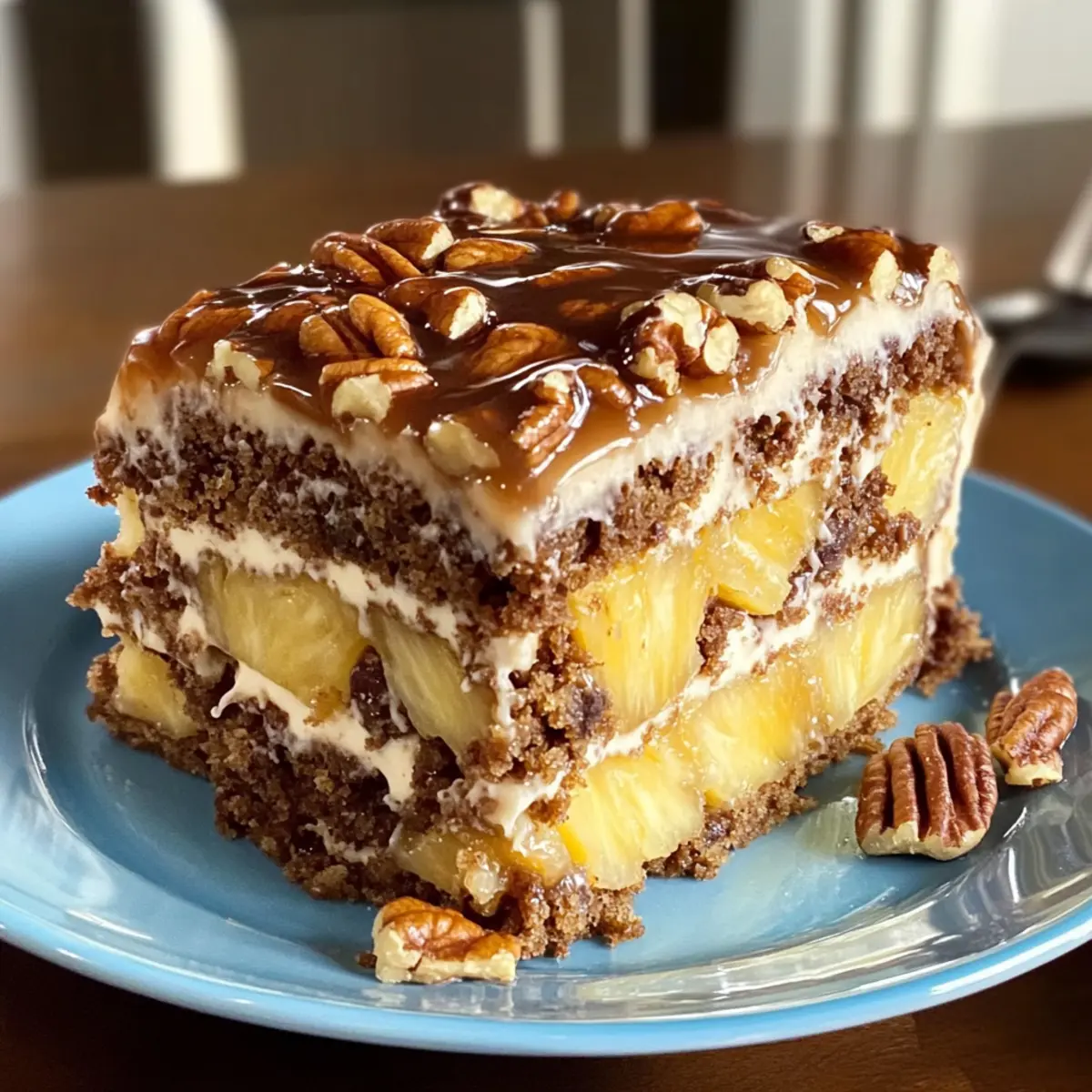 Saftiger Texas Tornado Kuchen mit Ananas und Pekanoen