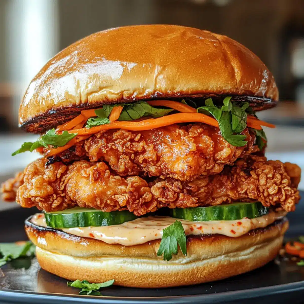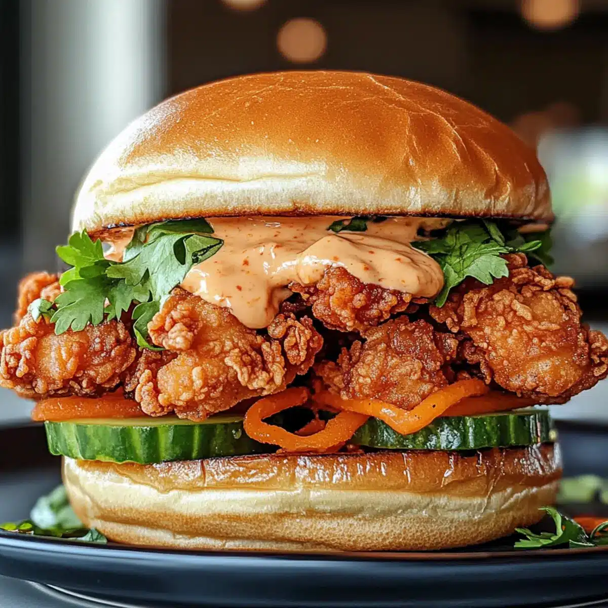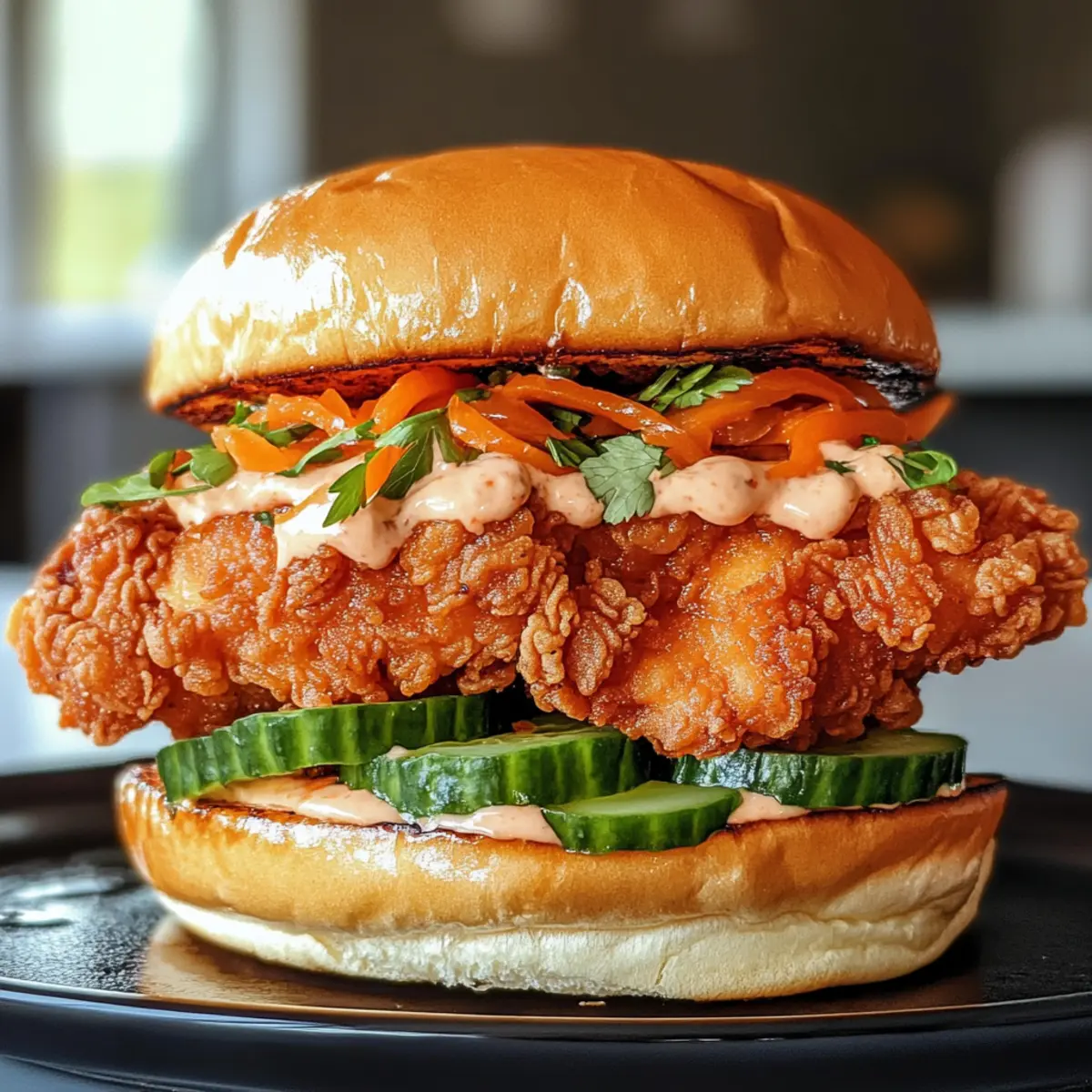 Garnituren: Experimentiere mit frischen Kräutern oder verschiedenen Saucen, um das thailändische frittiertes Hühnchen-Sandwich nach deinem Geschmack zu personalisieren.