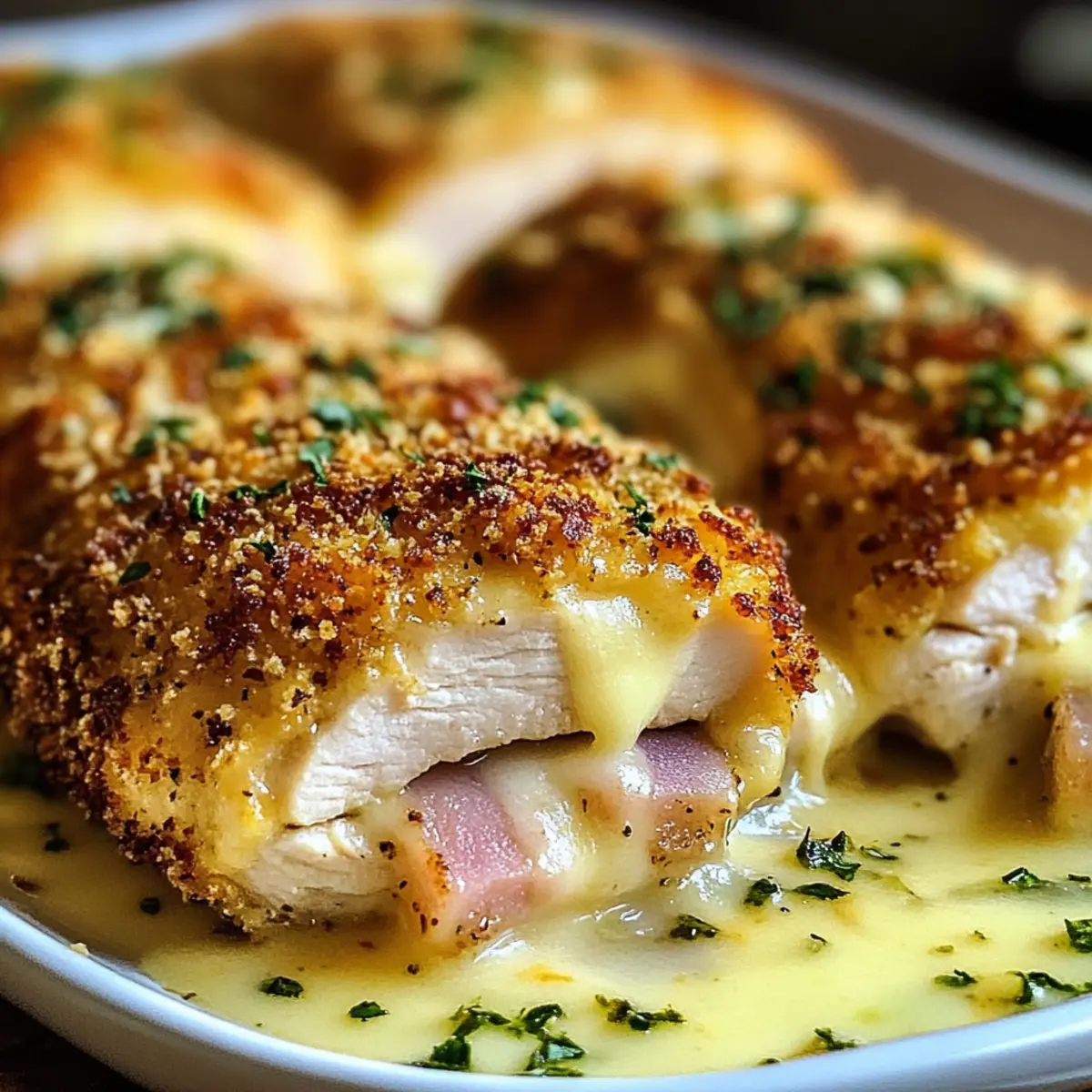 Als ich das erste Mal in die Küche trat, um mein Überbackenes Hähnchen Cordon Bleu zuzubereiten, war ich neugierig, ob ich diese köstliche Kombination aus zartem Hühnchen, herzhaftem Schinken und geschmolzenem Käse perfekt hinbekommen würde. Diese einfache, aber beeindruckende Speise ist der ideale Helfer für stressige Wochentage oder das nächste Dinner mit Freunden. Mit ihrem knusprigen Pankobrot und der Möglichkeit, die Füllungen ganz nach deinem Geschmack anzupassen, wird dieses Gericht garantiert zum neuen Favoriten bei der Familie. Die schnelle Zubereitung und die flexiblen Variationen, einschließlich glutenfreier Optionen, machen es zum perfekten Beitrag für deine Kochabenteuer. Bist du bereit, die Küche zu erobern? Lass uns gemeinsam die Schritte zum ultimativen Genuss entdecken!