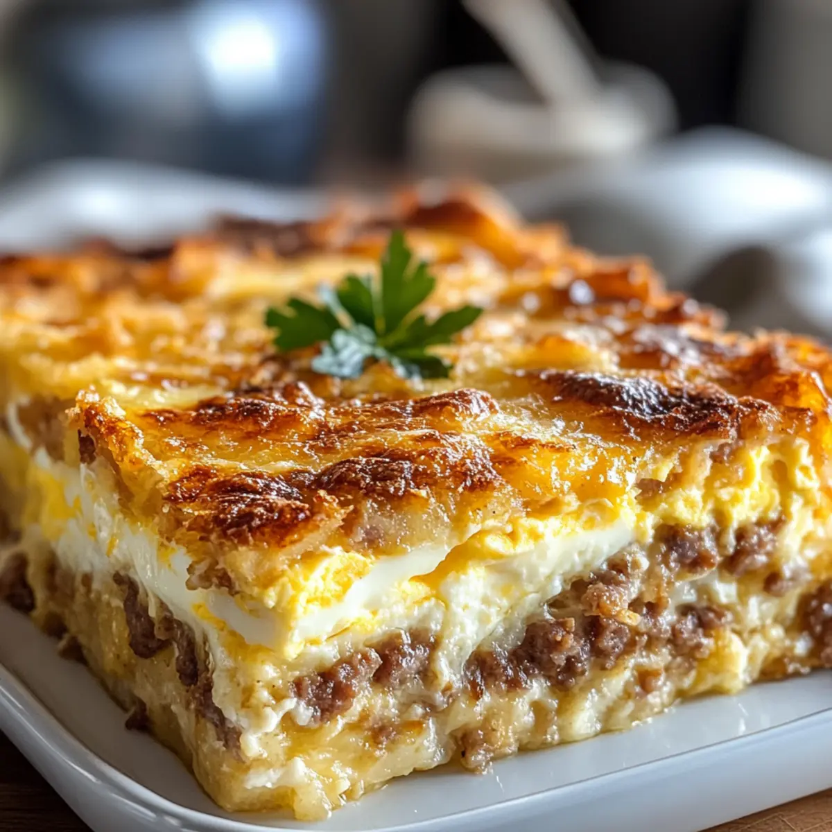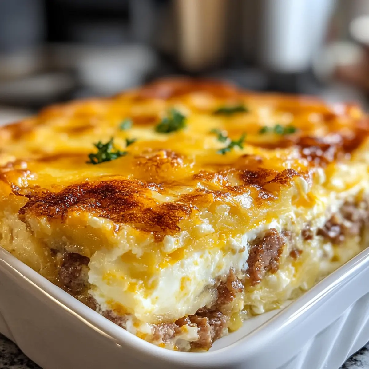 Wurst, Ei und Frischkäse Röstkartoffeln für den Brunch