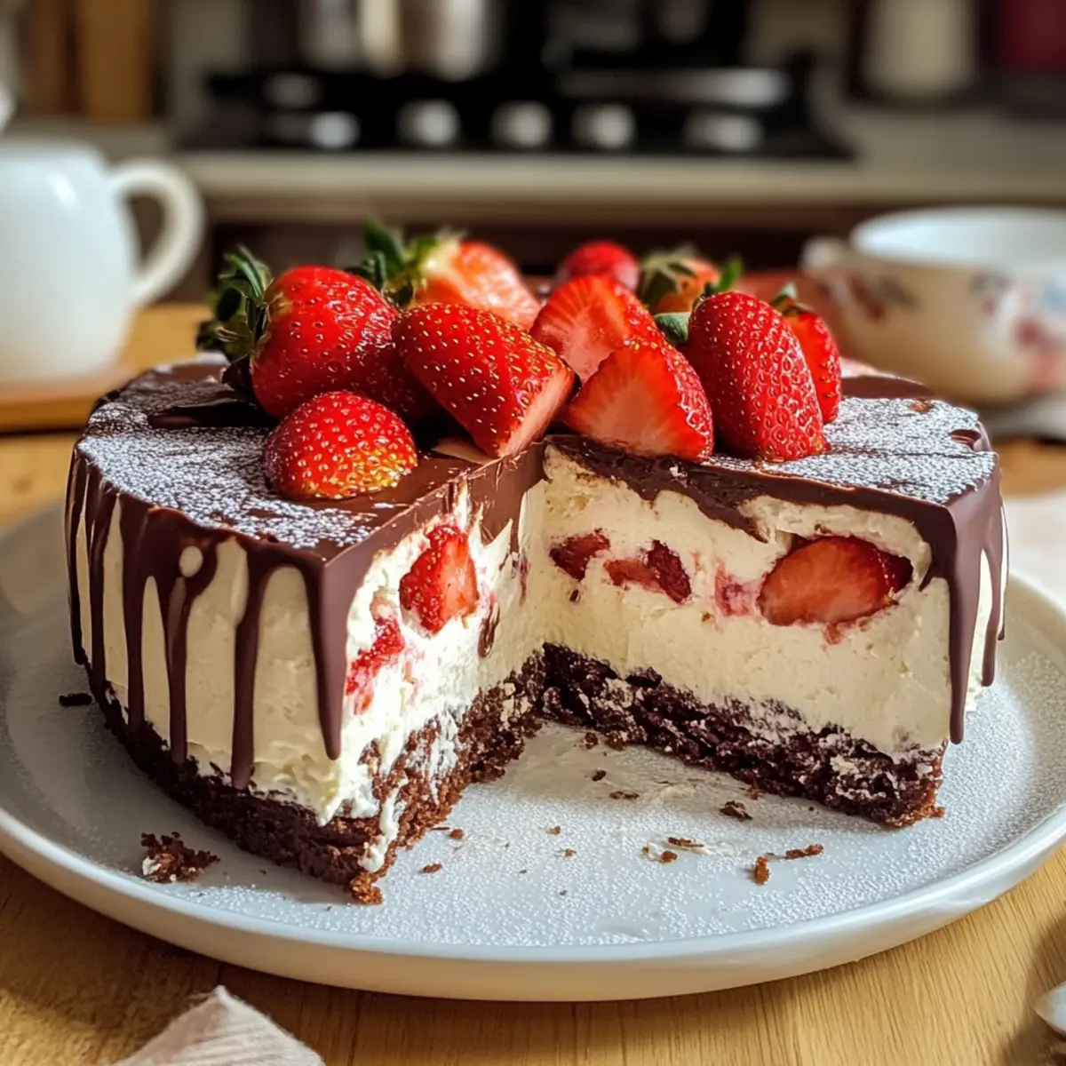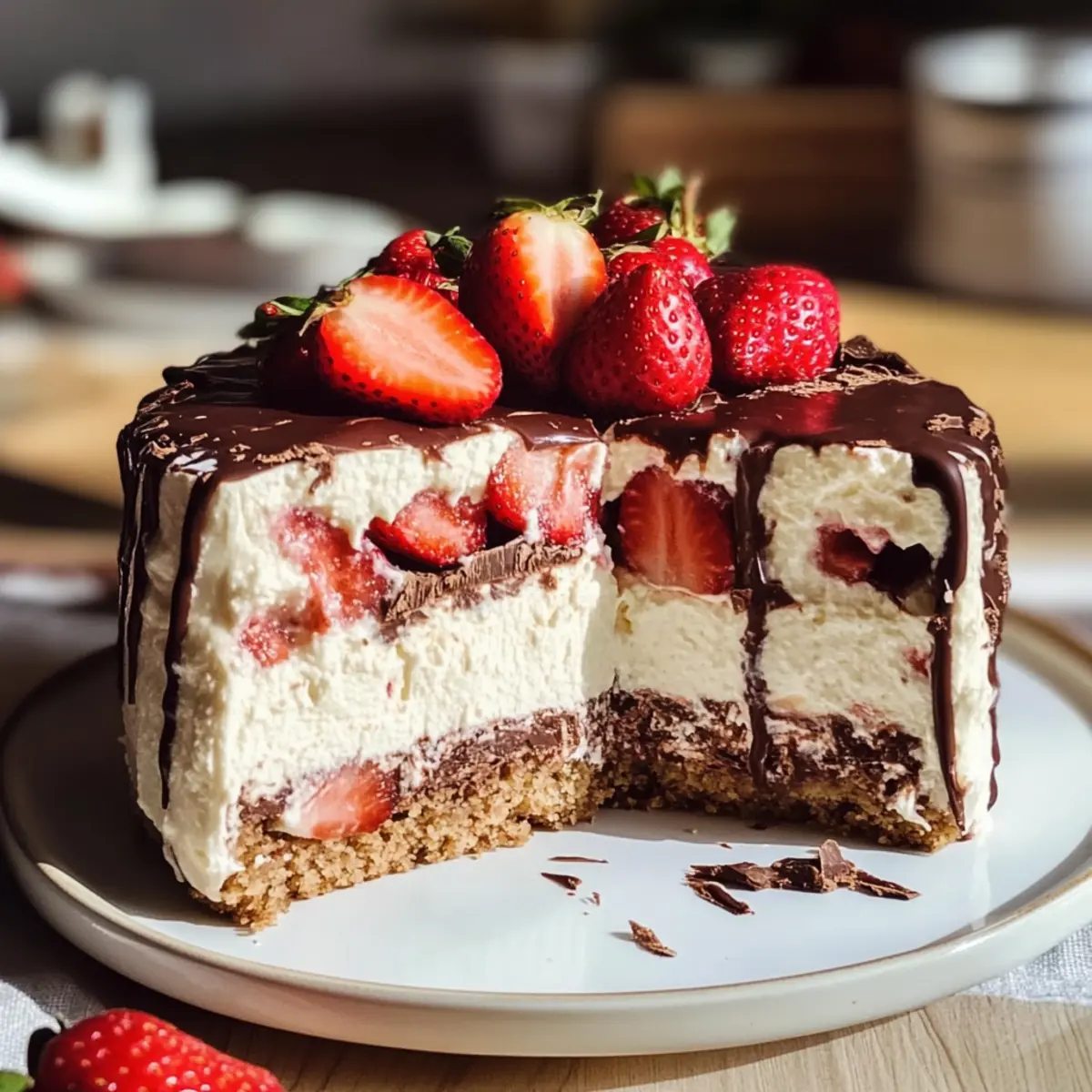 Köstlicher Yogurette Kuchen mit Erdbeeren und Mascarpone