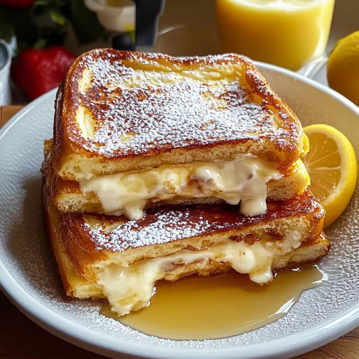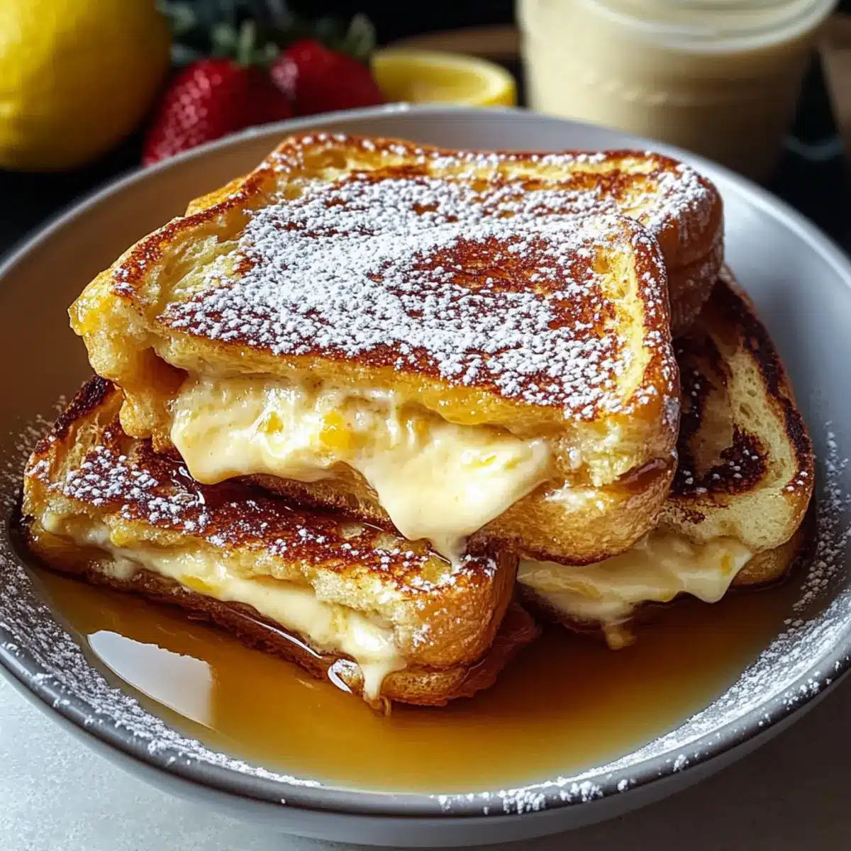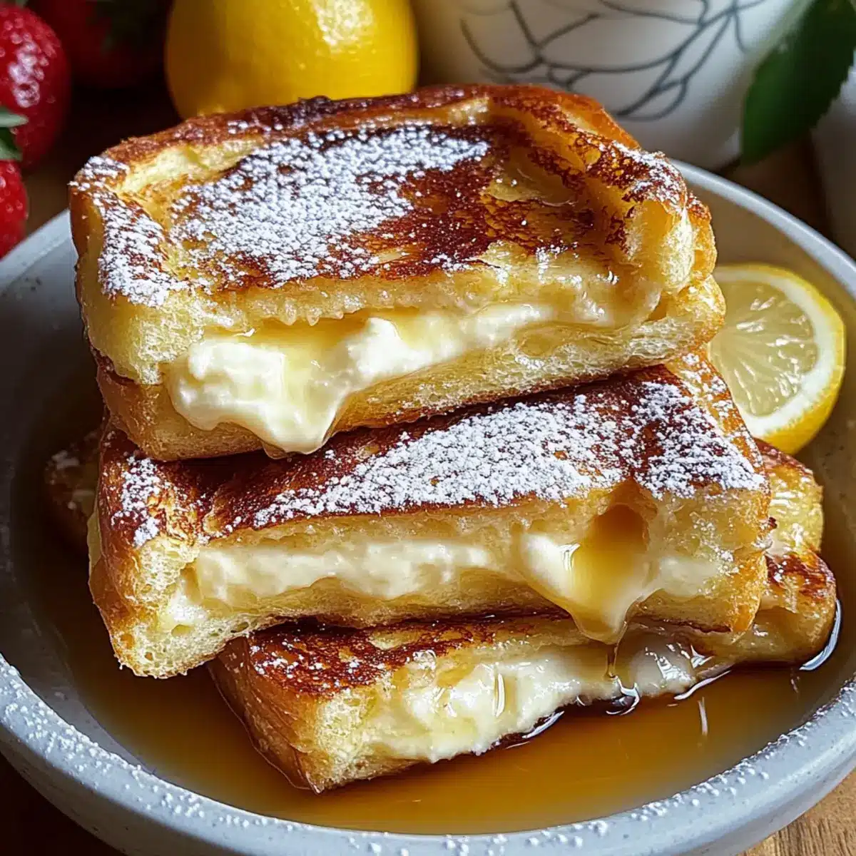 Zitronen-Käsekuchen gefüllter French Toast für den Brunch